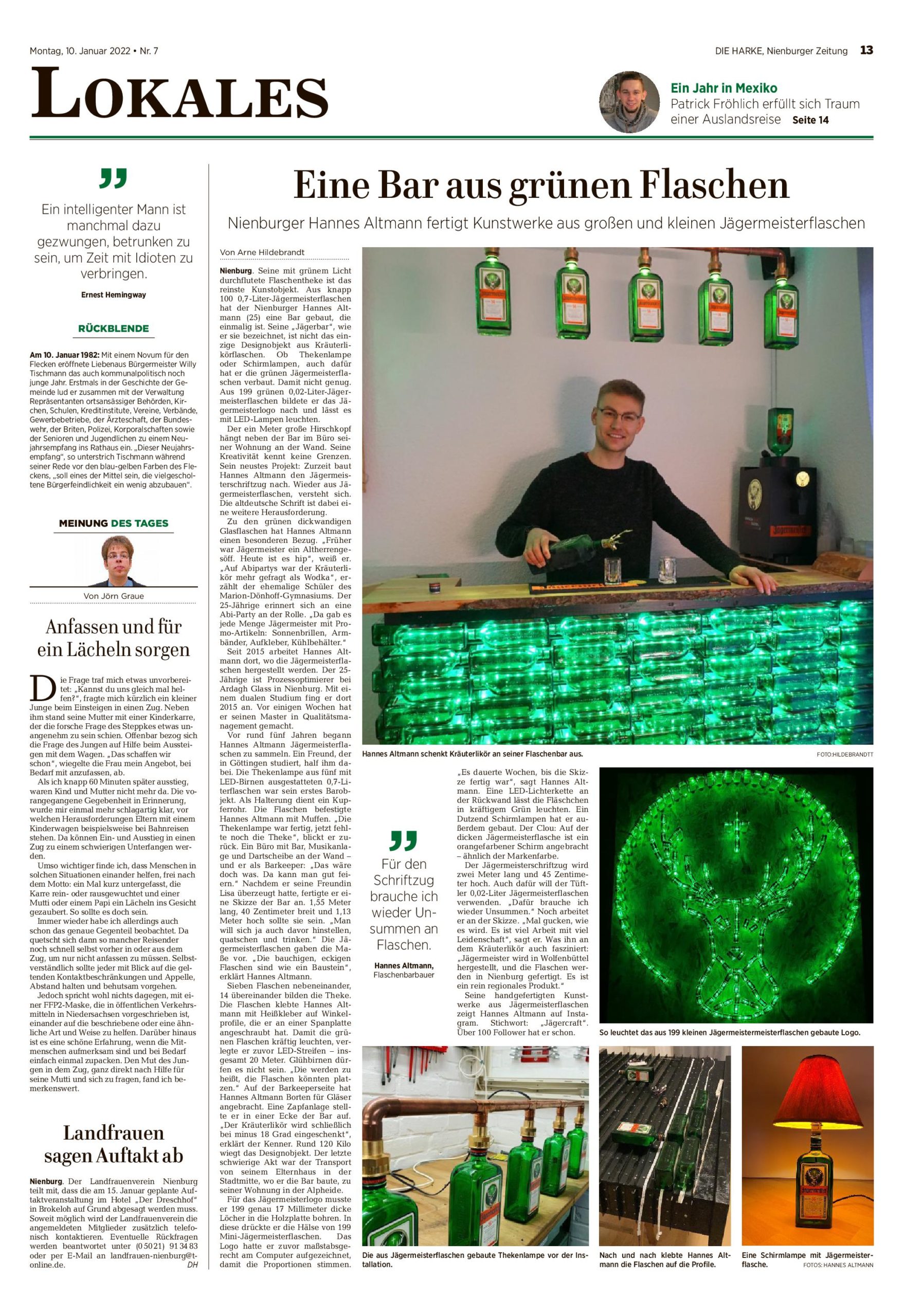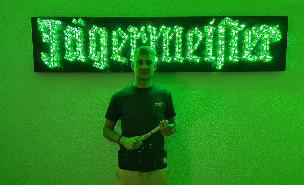 Seit meinem ersten Jägermeister-Rausch konnte ich mich dem Kräuterlikör nicht mehr entziehen. Schon früh habe ich angefangen, die leeren Jägermeister-Flaschen nicht wie üblich in den Glascontainer zu werfen, sondern zu sammeln. Damals noch ohne ein konkretes Projekt vor Augen gehabt zu haben, hat sich dieser Instinkt mittlerweile als goldrichtig erwiesen. Mit ein bisschen handwerklichem Geschick und viel Unterstützung von Familie, Freunden und Kollegen sind in den letzten Jahren viele einzigartige Projekte entstanden. Über 1000 kleine und große Jägermeister-Flaschen sind hier bisher verbaut worden. Auf dieser Website und auf meinen anderen Kanälen kannst Du die Entstehungsgeschichte nachvollziehen und einzelne Produkte erwerben. Viel Spaß!